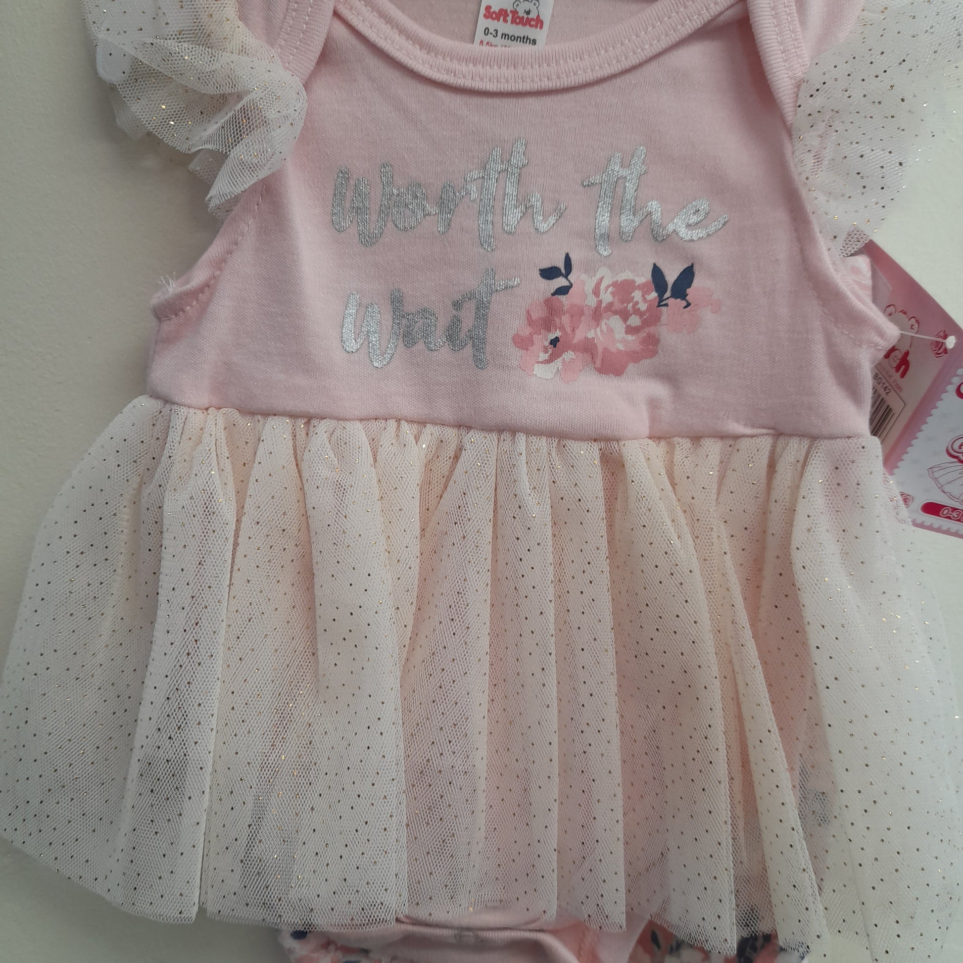 Includes babysuit with the cuteset tutu with a gold dot design and a Bib with ruffle trim to match tutu.
