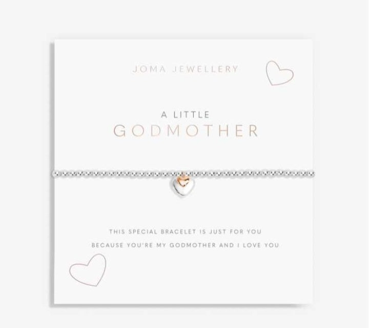 Treat your lovely godmother to the most gorgeous gift with our 'A Little' Godmother Bracelet. This silver-plated treasure is decorated with a double charm, featuring one shining heart for your godmother and a smaller one to represent you, her goddaughter. Presented against a gorgeous card and paired with a lovely poem, this bracelet was designed to make for the most magical gift.