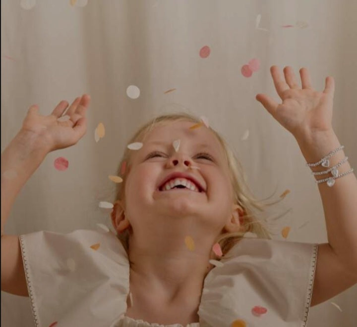 Get the party started with our super cute Kids' Confetti A Little bracelets! Celebrating their birthday with a shining silver-plated heart charm, our Kids' Confetti A Little 'Just For You Birthday Girl' bracelet in silver plating is the ultimate way to say 'yay' with your little one. Wrapped around a blush pink presentation card and ready to gift in wrapping filled with colourful tissue confetti, it's sure to be a gifting moment they treasure for years to come.