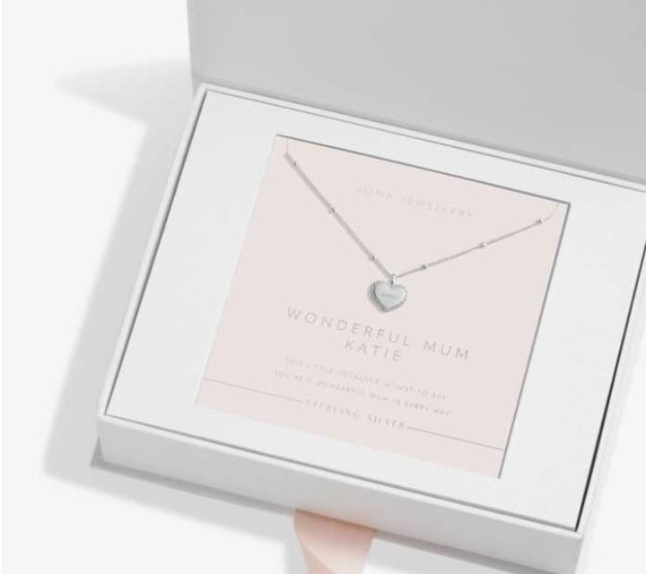 This little necklace is just to say, you're a wonderful mum in every way! Our stunning Sterling Silver ‘Wonderful Mum’ Necklace is created to make their special day one to remember, whatever the occasion. Lovingly created in quality sterling silver, this delicate chain necklace holds a pretty pavé embellished heart-shaped pendant that can be engraved with your own message. This necklace is presented on a pink sentiment-stamped card that sits pretty in a white box which is tied with a satin blush pink bow, making for the most luxury of gifting moments.